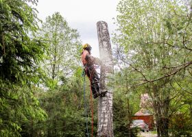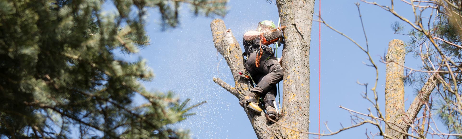 Baumfällarbeiten: Hierzu zählen Baufeldräumung, Problembaumfällung, Holztransport oder Grünschnitt-Entsorgung.